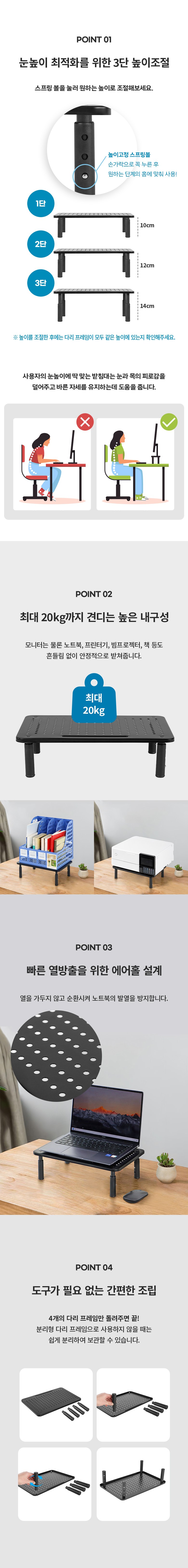 - 모니터받침대 높이: 2단 이상