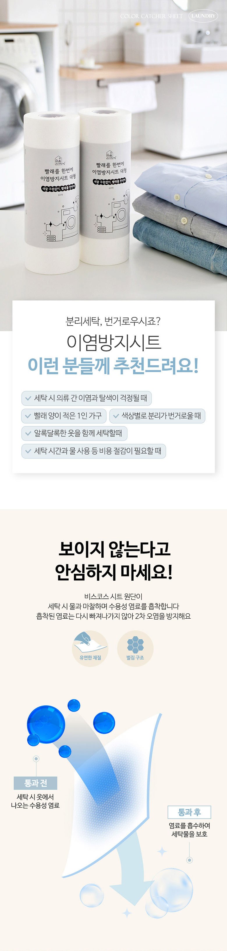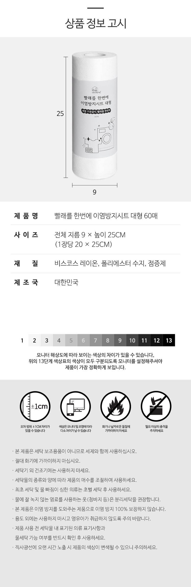 | 품명 및 모델명 | 빨래를 한번에 이염방지시트 대형 60매 | 인증/허가 사항 | 해당없음 |