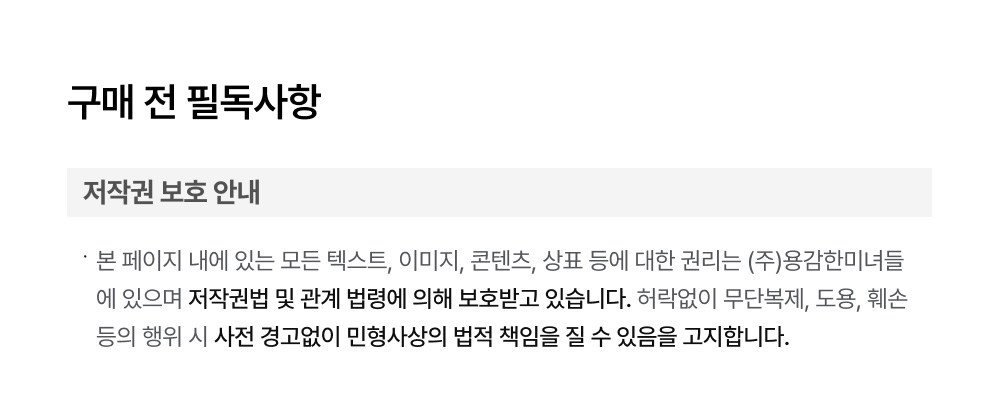 - ㆍ교환/반품에 관한 일반적인 사항은 판매자가 제시사항보다 관계법령이 우선합니다.