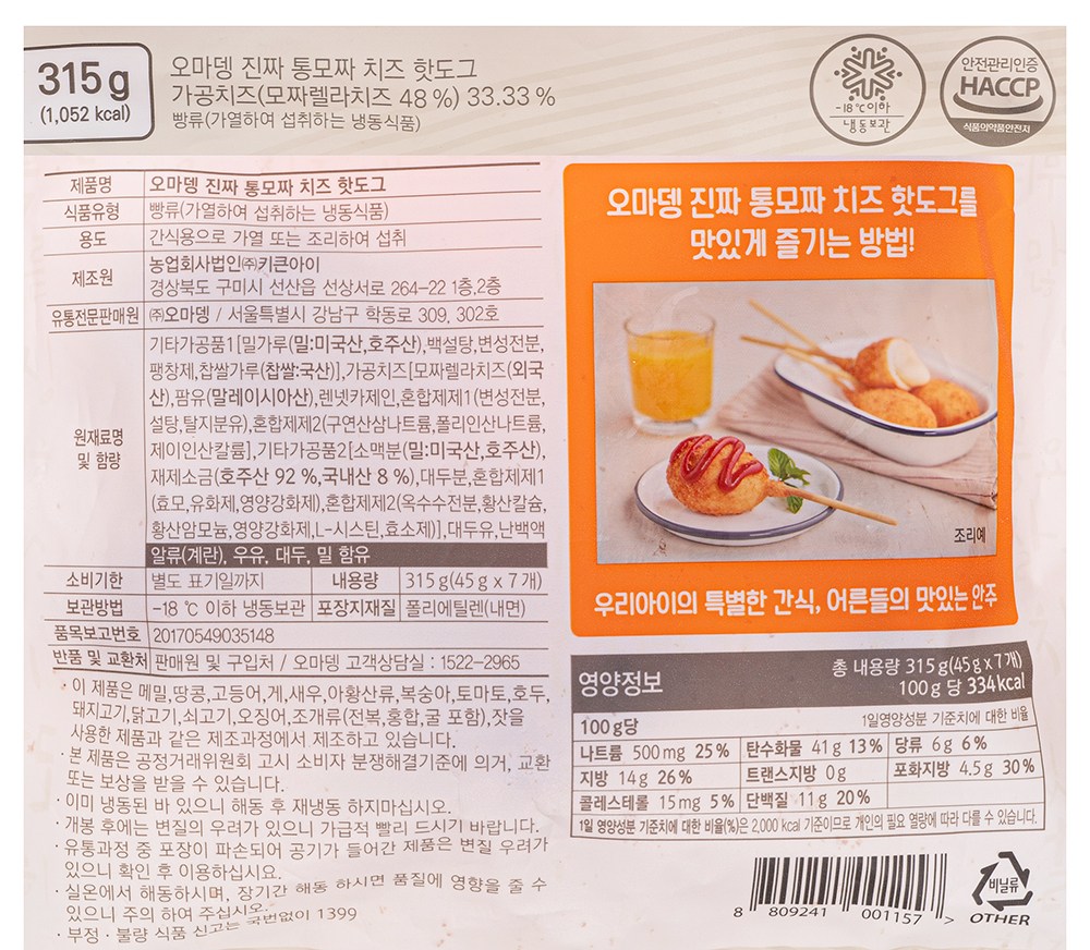 | 생산자 및 소재지 | 컨텐츠 참조 | 제조연월일, 소비기한 또는 품질유지기한 | 업데이트 예정 |