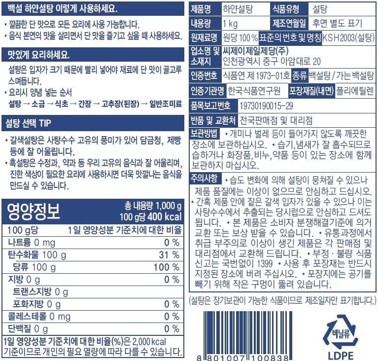 | 포장단위별 내용물의 용량(중량), 수량 | 1kg x 20개 | 원재료명 및 함량 | 컨텐츠 참조 |