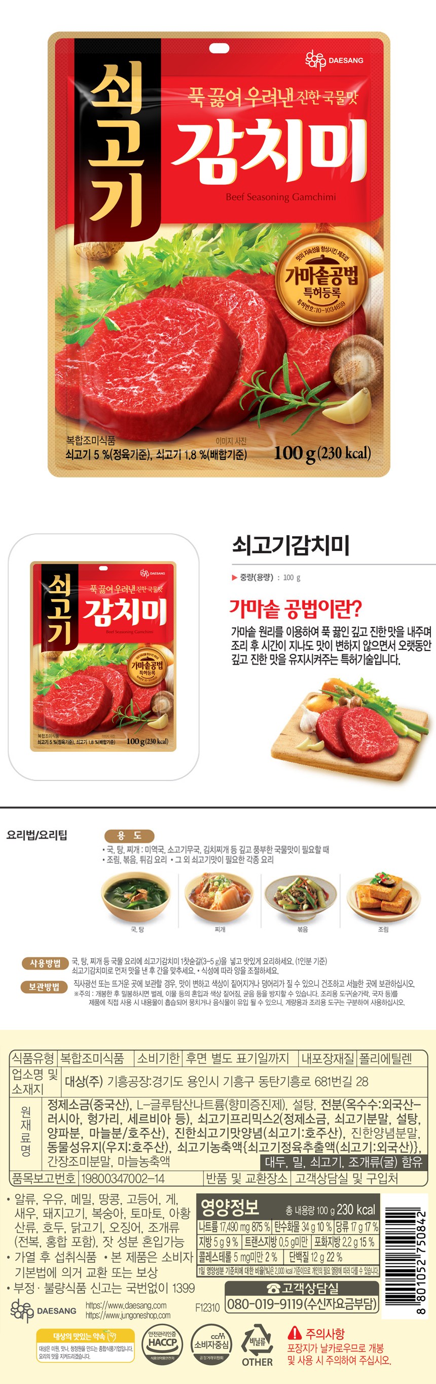 | 제품명 | 쇠고기감치미 | 식품의 유형 | 컨텐츠참조 |