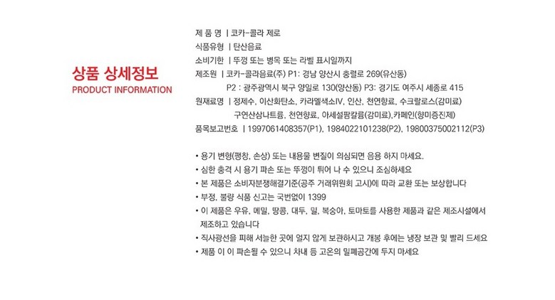 | 제조연월일, 소비기한 또는 품질유지기한 | 상품 상세페이지 참조 | 세부 품목군별 표시사항 | 상품 상세페이지 참조 |
