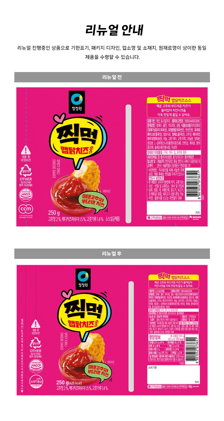 | 제품명 | 찍먹 맵닭치즈소스 | 식품의 유형 | 컨텐츠 참조 |