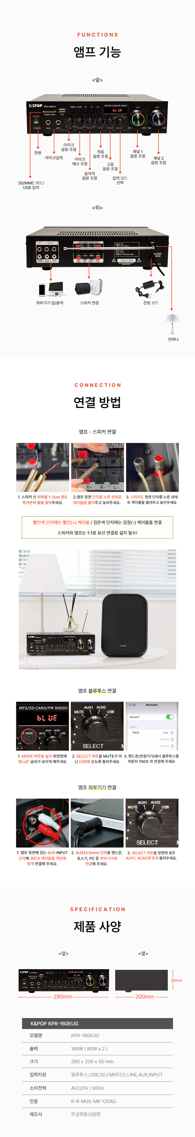 | 품명 및 모델명 | 2채널 앰프 KPR-160EUG | KC 인증정보 | 인증완료 |