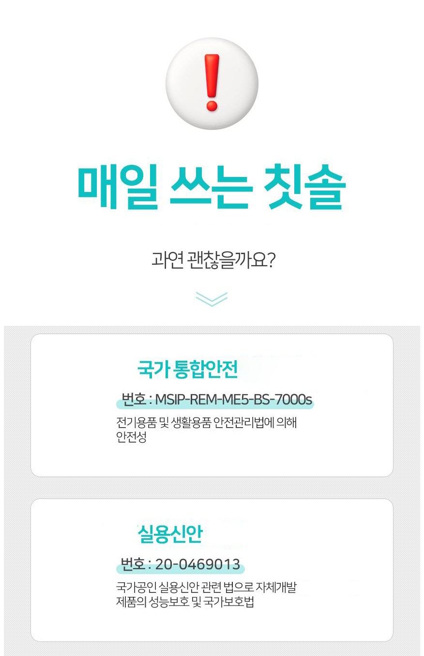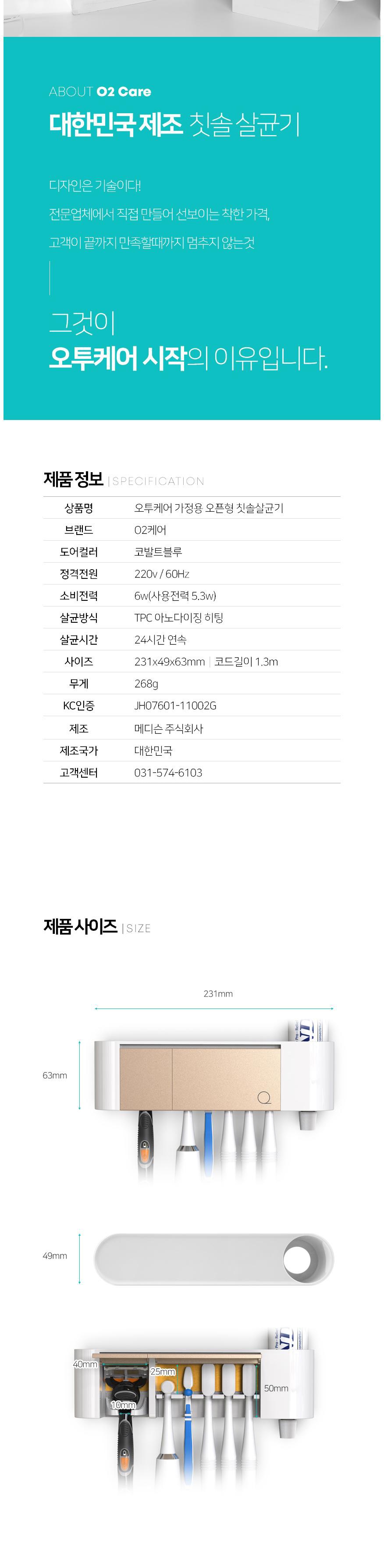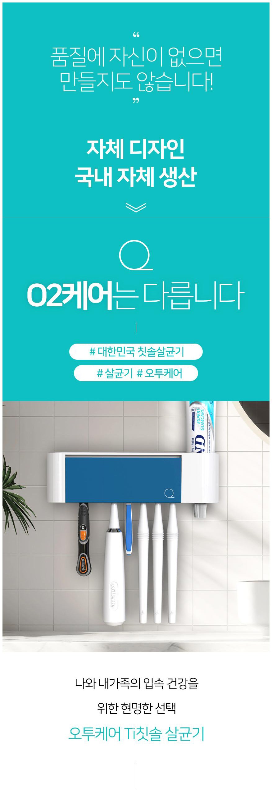 | 품명 및 모델명 | 오투케어 POP아노다이징 가정용 오픈형 칫솔살균기 / Ti-700 | KC 인증정보 | JH07601-11002N, MSIP-REM-ME5-BS-7000s |