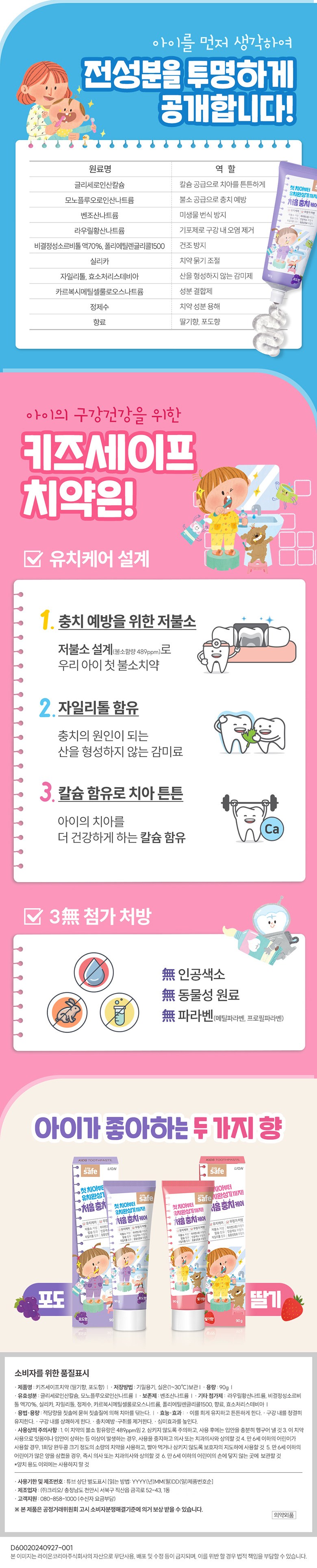 | 품명 및 모델명 | 키즈세이프 치약 포도 90g | 인증/허가 사항 | 의약외품 |
