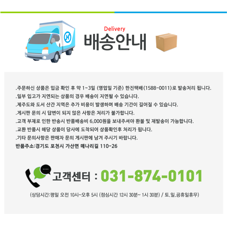 | 소비자상담 관련 전화번호 | 031-874-0101 | ||