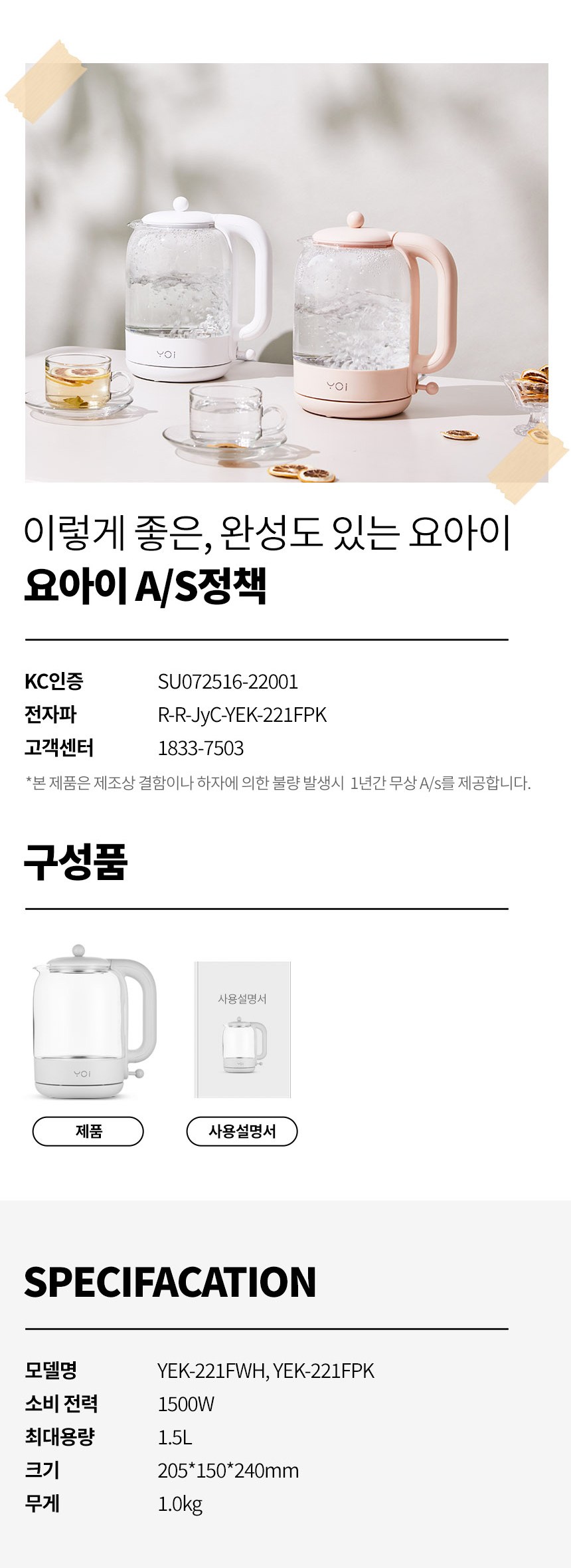 | 품명 및 모델명 | 전기주전자/YEK-221FPK | KC 인증정보 | SU072516-22001, R-R-JyC-YEK-221FPK |
