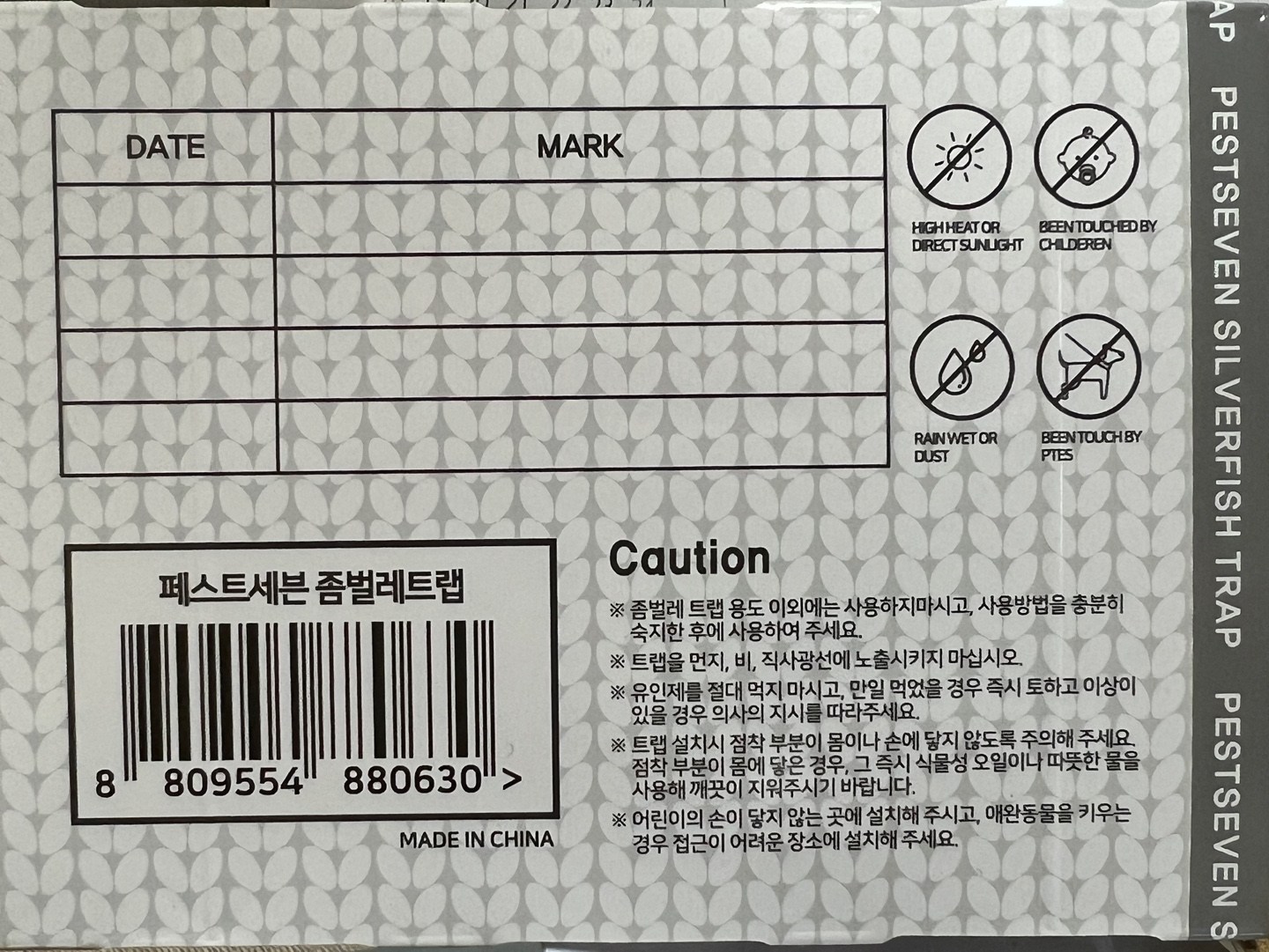 | 품명 및 모델명 | 페스트7 좀벌레트랩 | 인증/허가 사항 | 해당없음 |