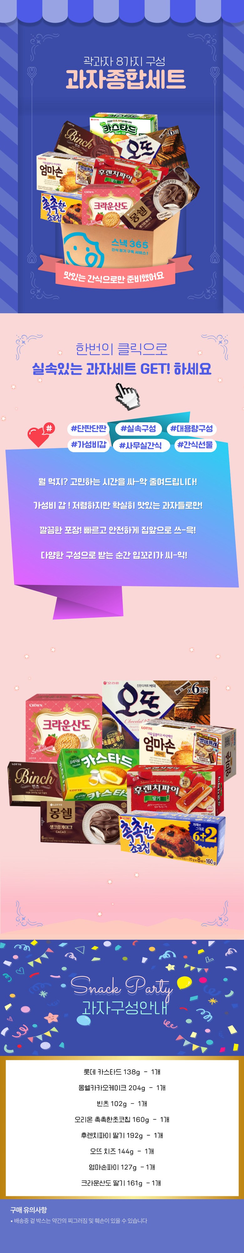 | 제품명 | 몽쉘카카오+엄마손파이+오뜨치즈+후렌치파이 딸기+빈츠+카스타드+촉촉한초코칩+크라운산도딸기 | 식품의 유형 | 상품 상세페이지 참조 |