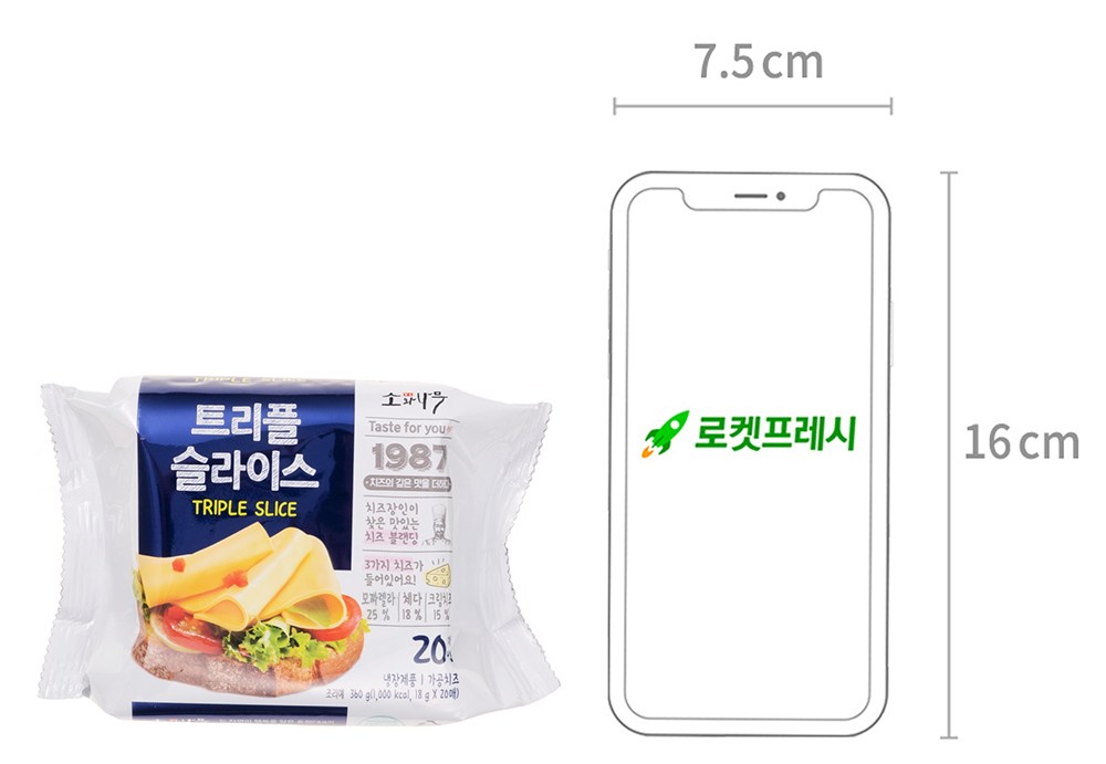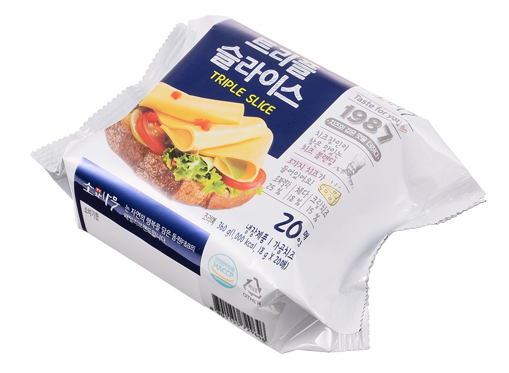 체다치즈와 크림치즈를 사용해 맛이 진한 트리플 슬라이스예요. 야들야들한 질감과 고소하고 부드러운 풍미가 일품이지요. 그대로 드셔도 맛있고, 함박스테이크나 샌드위치에 넣어도 좋아요. 다채로운 요리에 활용해 맛과 멋을 더해보세요.