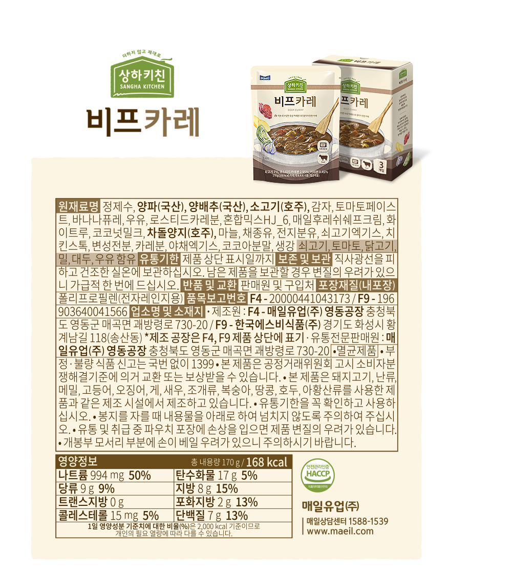 | 제품명 | 상하키친 비프카레 | 식품의 유형 | 컨텐츠 참조 |