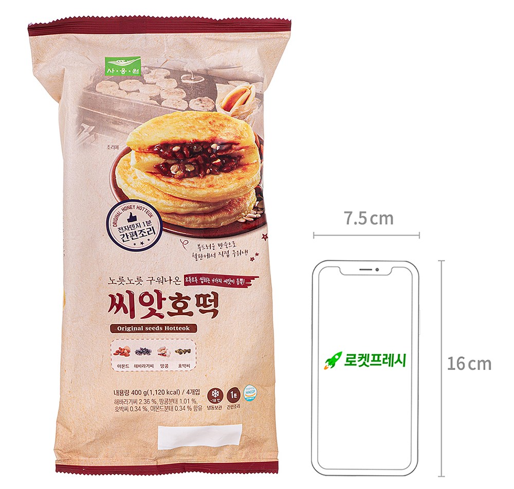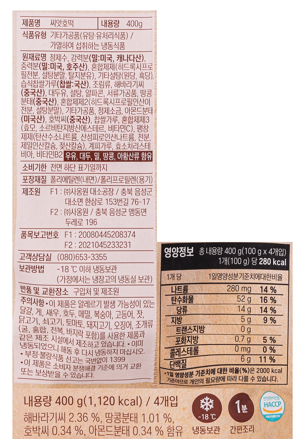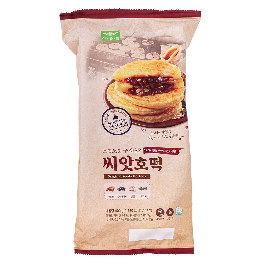 겉은 쫀득하고 속은 촉촉한 씨앗호떡이에요. 해바라기씨, 호박씨를 품어 오독오독한 식감이 일품이지요. 한입 베어 물면, 진한 달콤함이 입맛을 사로잡는답니다. 전자레인지나 에어프라이어 등으로 조리해 손쉽게 즐겨보세요.