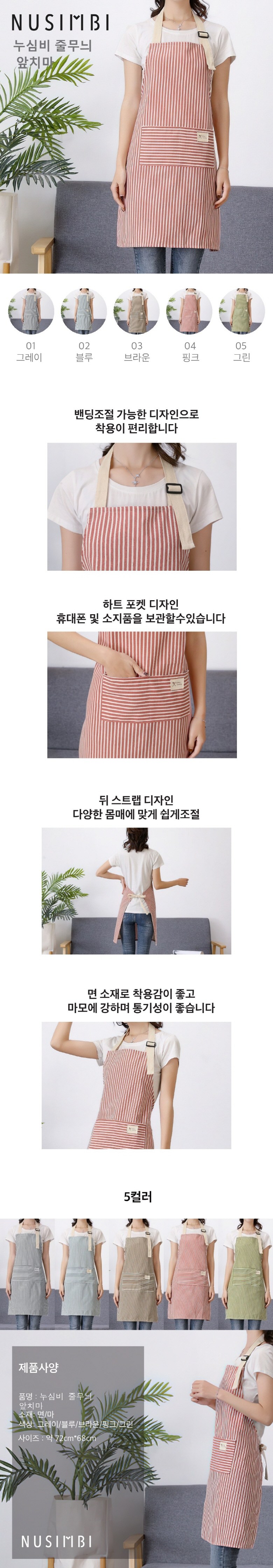 | 품명 및 모델명 | 누심비 다용도 줄무늬 앞치마 | 재질 | 컨텐츠 참조 |