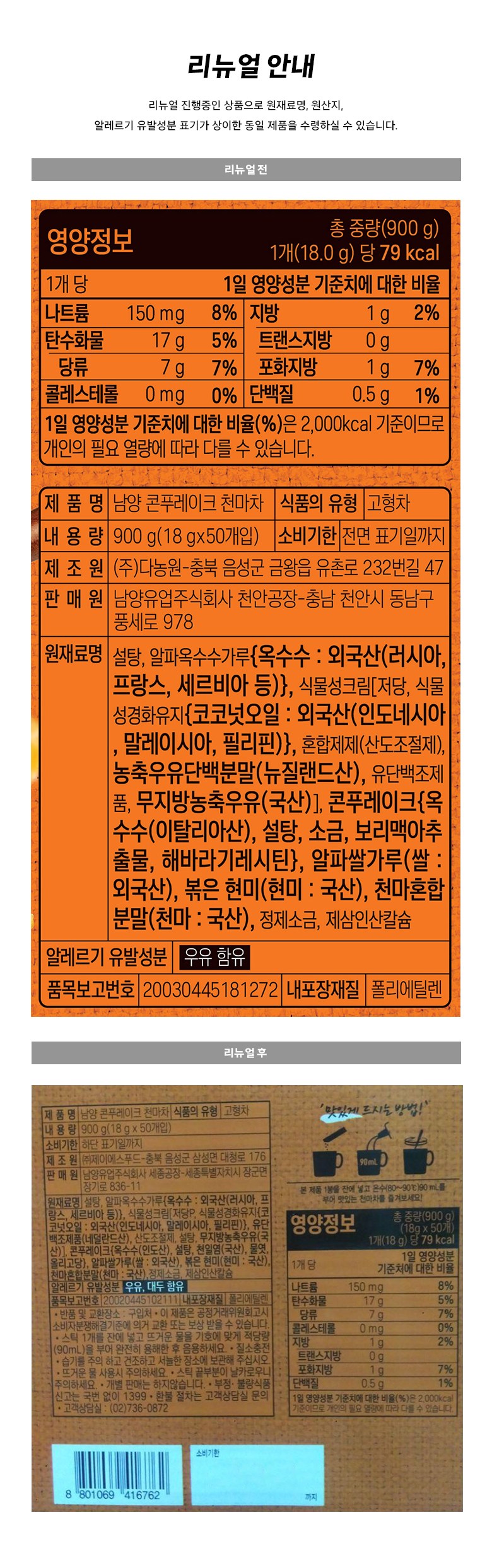 | 포장단위별 내용물의 용량(중량), 수량 | 컨텐츠 참조 | 원재료명 및 함량 | 컨텐츠 참조 |