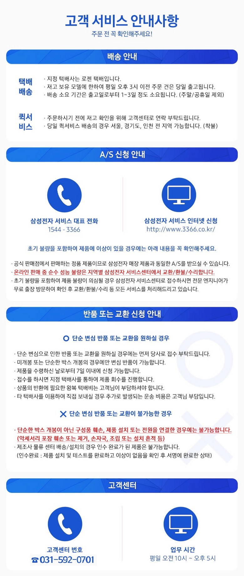 - ㆍ제조사의 사정 (신모델 출시 등) 및 부품 가격 변동 등에 의해 무료 교환/반품으로 요청하는 경우