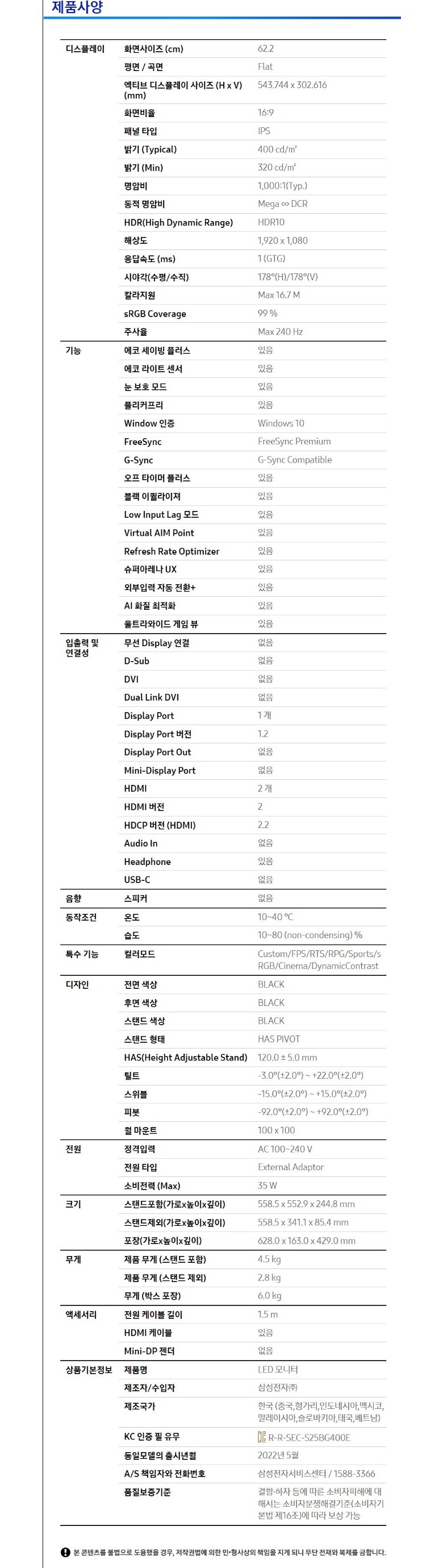 | 정격전압, 소비전력 | 상품 상세페이지 참조 | 에너지소비효율등급 | 상품 상세페이지 참조 |