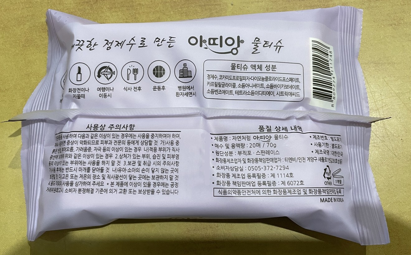 | 용량(중량) | 70g*20팩 | 제품 주요 사양 | 모든 피부용 |