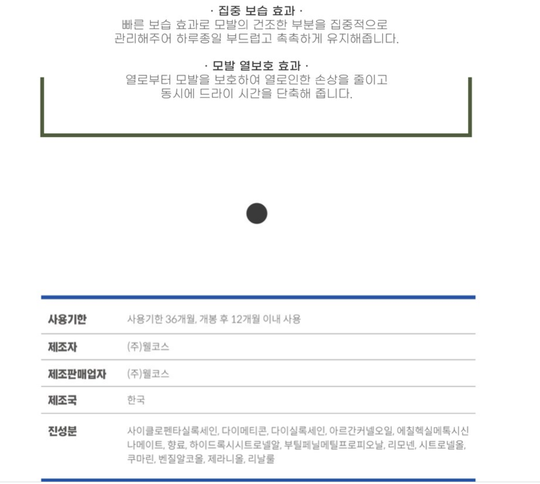 | 화장품제조업자, 화장품책임판매업자 및 맞춤형화장품판매업자 | 상품 상세페이지 참조 | 제조국 | 상품 상세페이지 참조 |