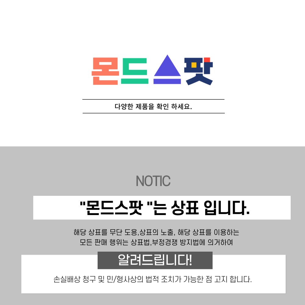 - ㆍ모니터 해상도의 차이로 인해 색상이나 이미지가 실제와 달라, 고객이 단순 변심으로 교환/반품을 무료로 요청하는 경우