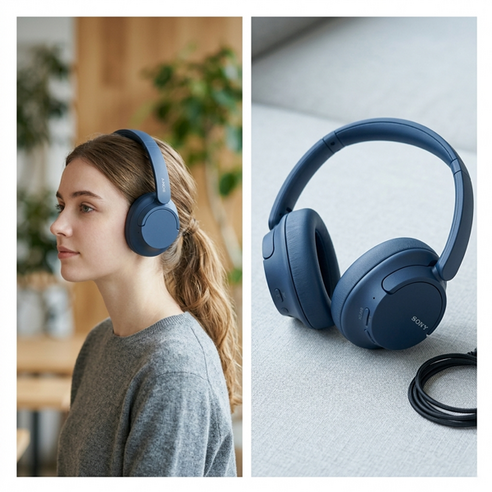 소니 가벼운 노이즈 캔슬링 헤드폰 WH-CH720N 블랙 50시간 멀티단자