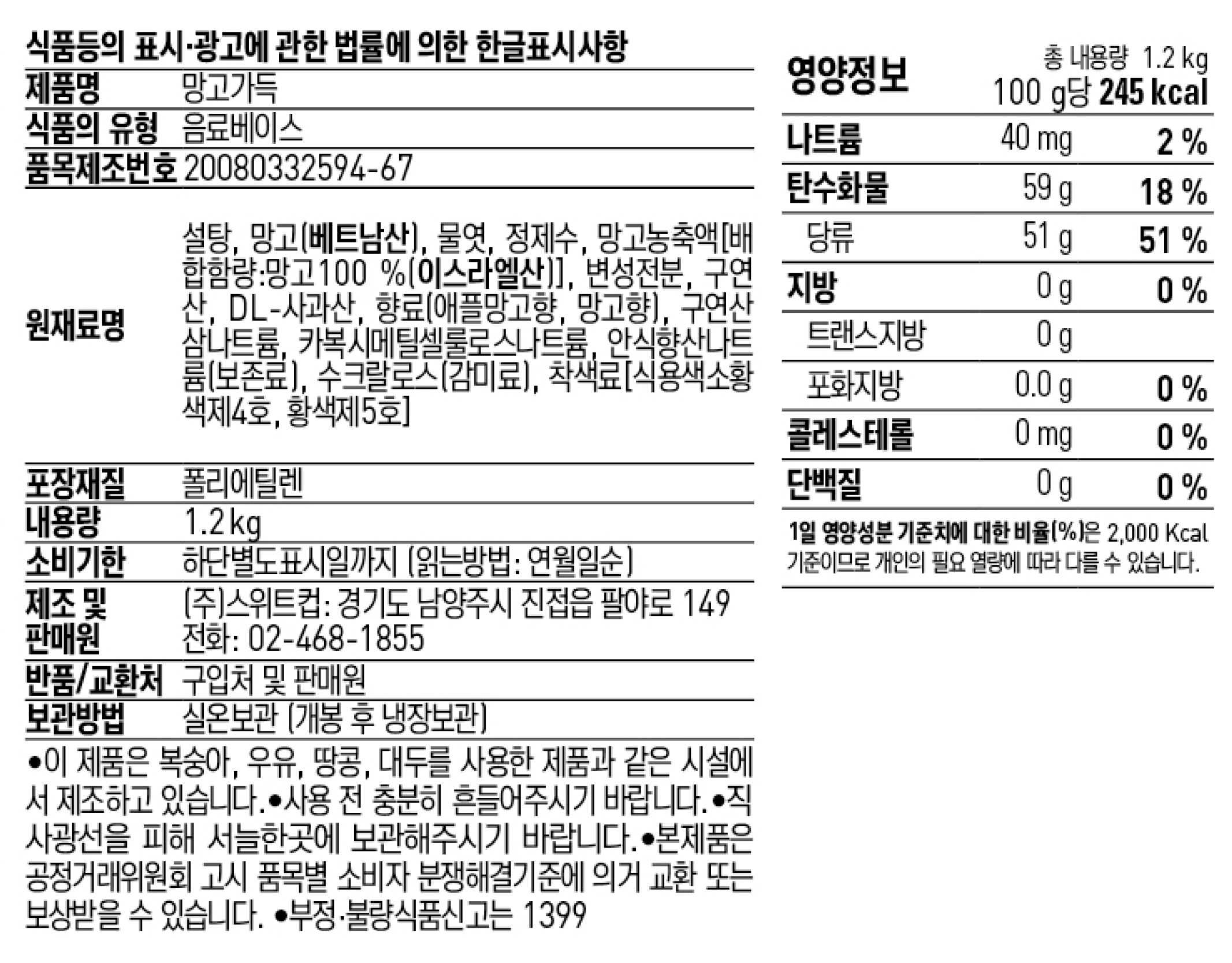 | 포장단위별 내용물의 용량(중량), 수량 | 1.2kg x 6개 | 원재료명 및 함량 | 컨텐츠 참조 |