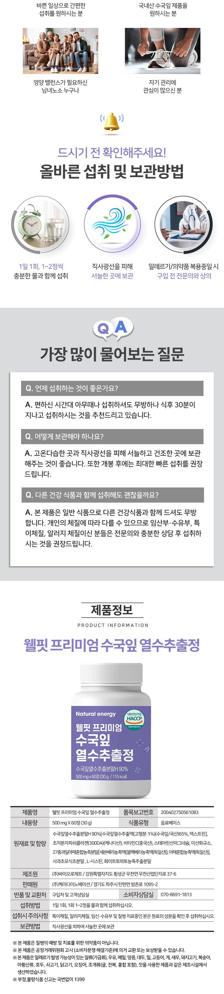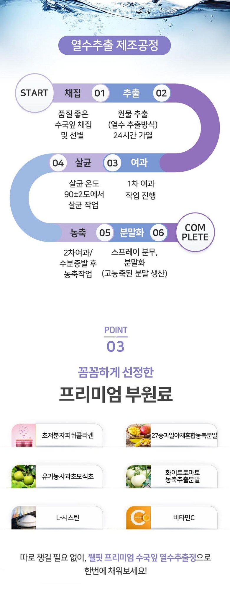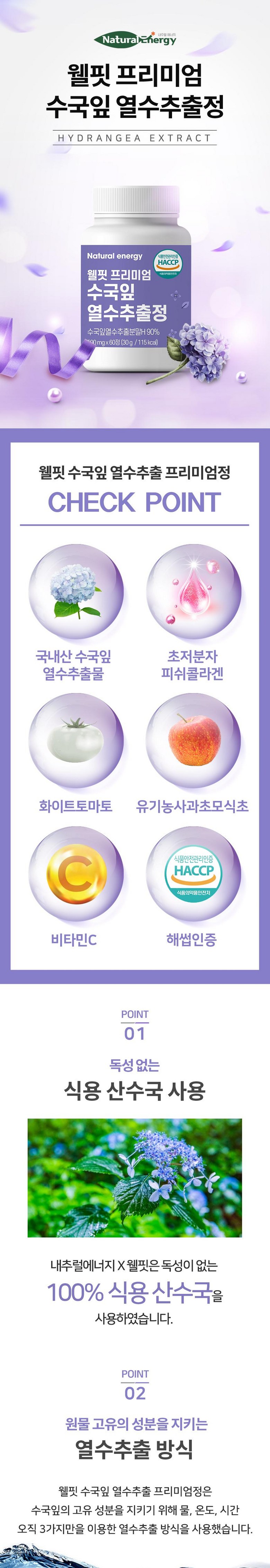 | 품목 또는 명칭 | 웰핏 수국잎 열수 추출물 프리미엄정 | 포장단위별 내용물의 용량(중량),수량,크기 | 상품 상세페이지 참조 |