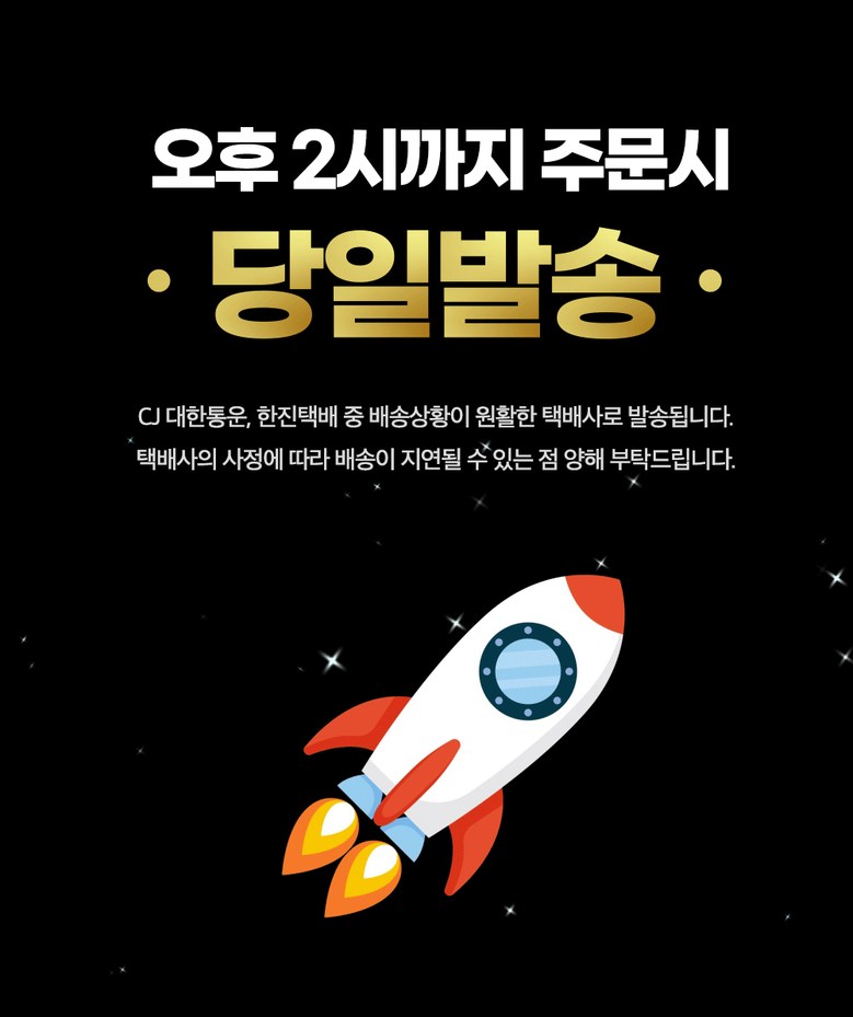 | 배송기간 | ㆍ도서산간 지역 등은 배송에 3-5일이 더 소요될 수 있습니다. - 천재지변, 물량 수급 변동 등 예외적인 사유 발생 시, 다소 지연될 수 있는 점 양해 부탁드립니다. | ||