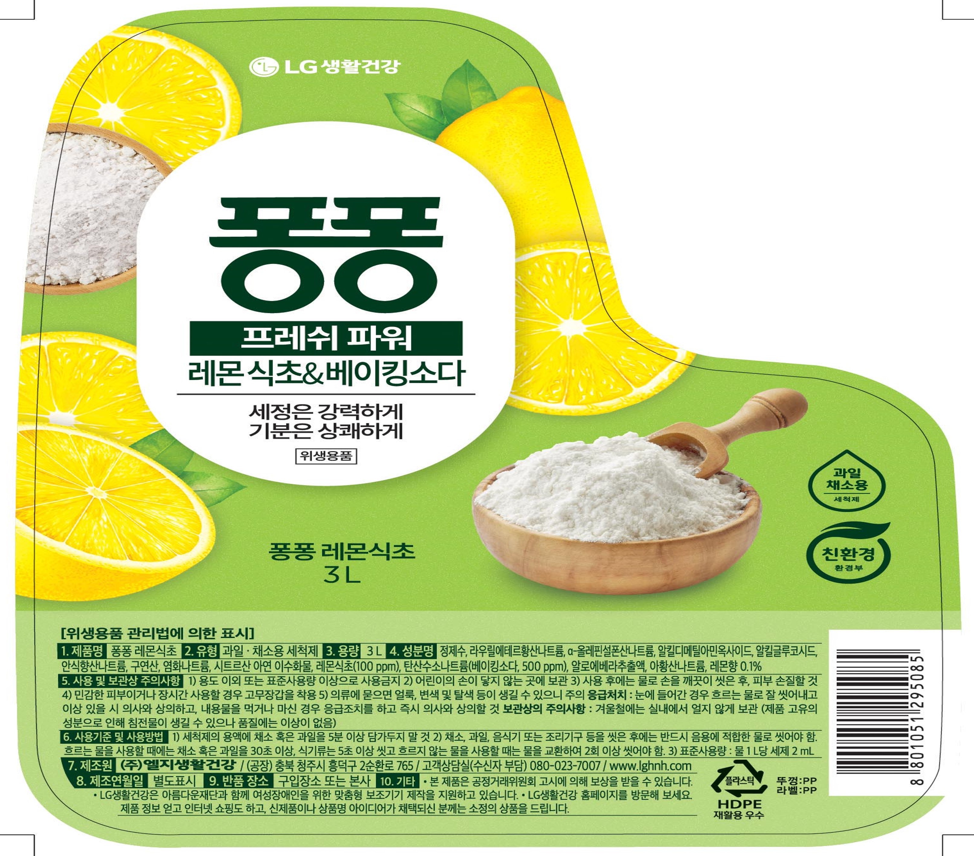 | 품명 및 모델명 | 퐁퐁 프레시 파워 주방세제 레몬 앤 베이킹소다 | 인증/허가 사항 | 위생용품 |