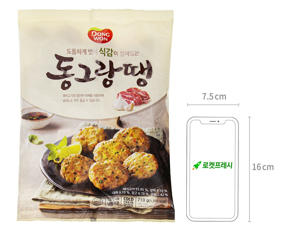 | 배송방법 | 신선/냉장/냉동 | 배송비 | 무료배송 - 로켓프레시 상품 중 15,000원 이상 구매 시 무료배송 - 해당 서비스 가능 지역에 한함 |