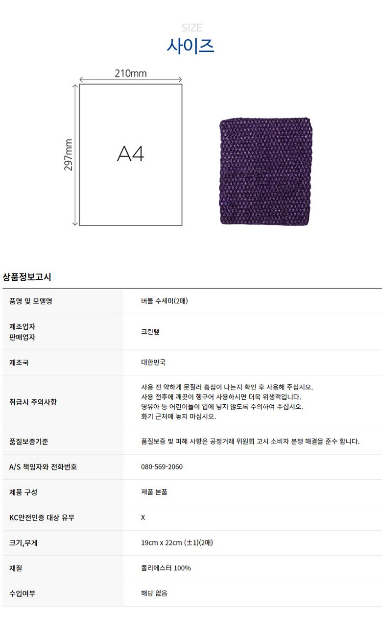 | 소비자상담 관련 전화번호 | 상품 상세페이지 참조 | ||