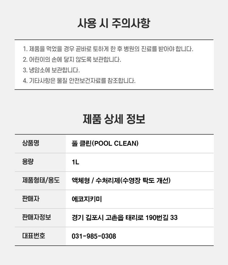 | 소비자상담 관련 전화번호 | 에코지키미 031-985-0308 | ||
