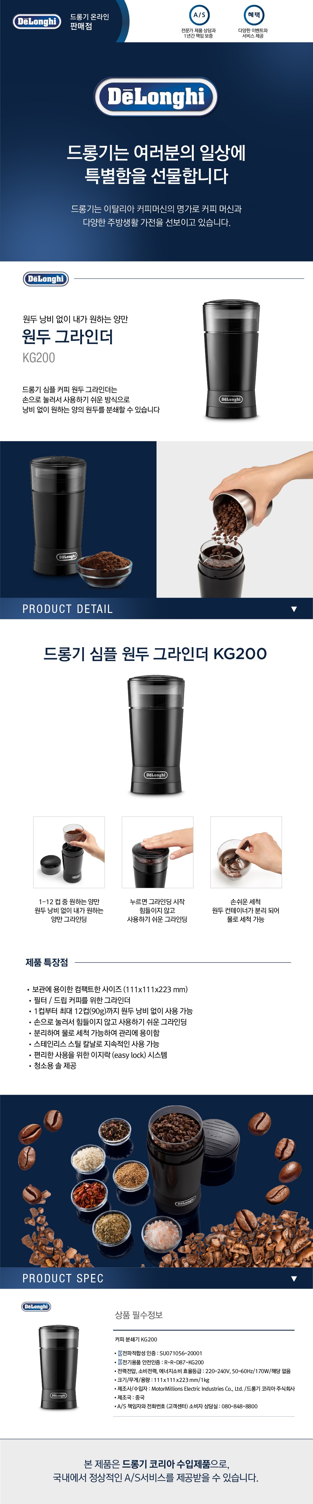 | 품명 및 모델명 | 커피분쇄기(Coffee Mill), KG200 | KC 인증정보 | SU071056-20001, R-R-D87-KG200 |