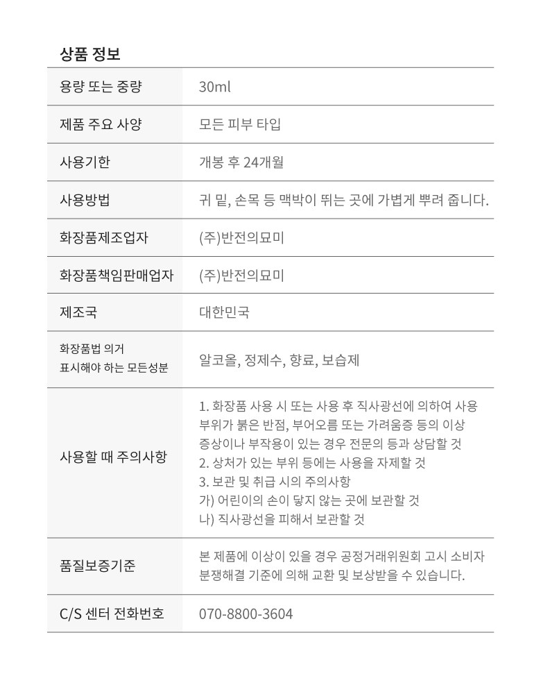 | 용량(중량) | 30ml | 제품 주요 사양 | 모든 피부용 |