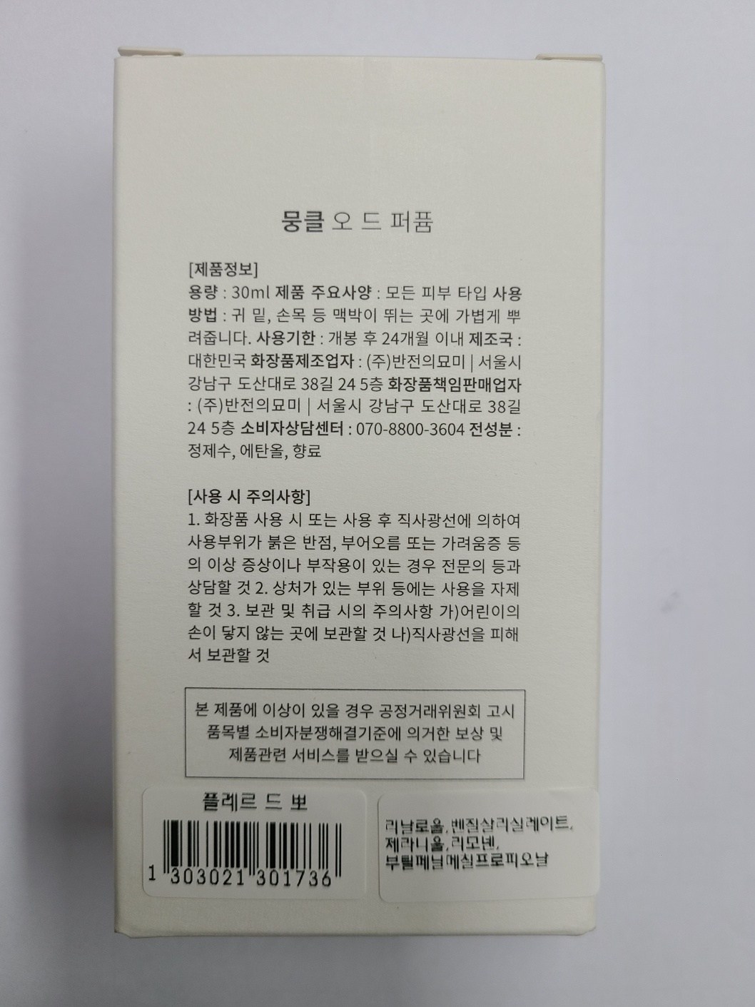| 화장품제조업자, 화장품책임판매업자 및 맞춤형화장품판매업자 | ㈜반전의묘미 / ㈜반전의묘미 | 제조국 | 대한민국 |