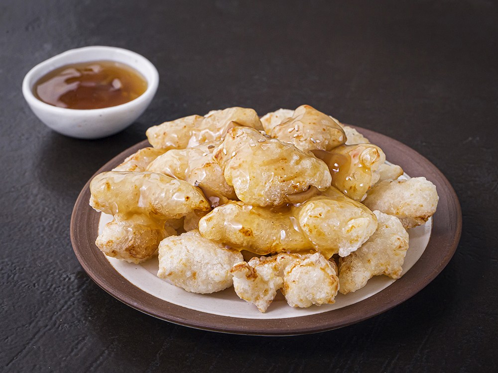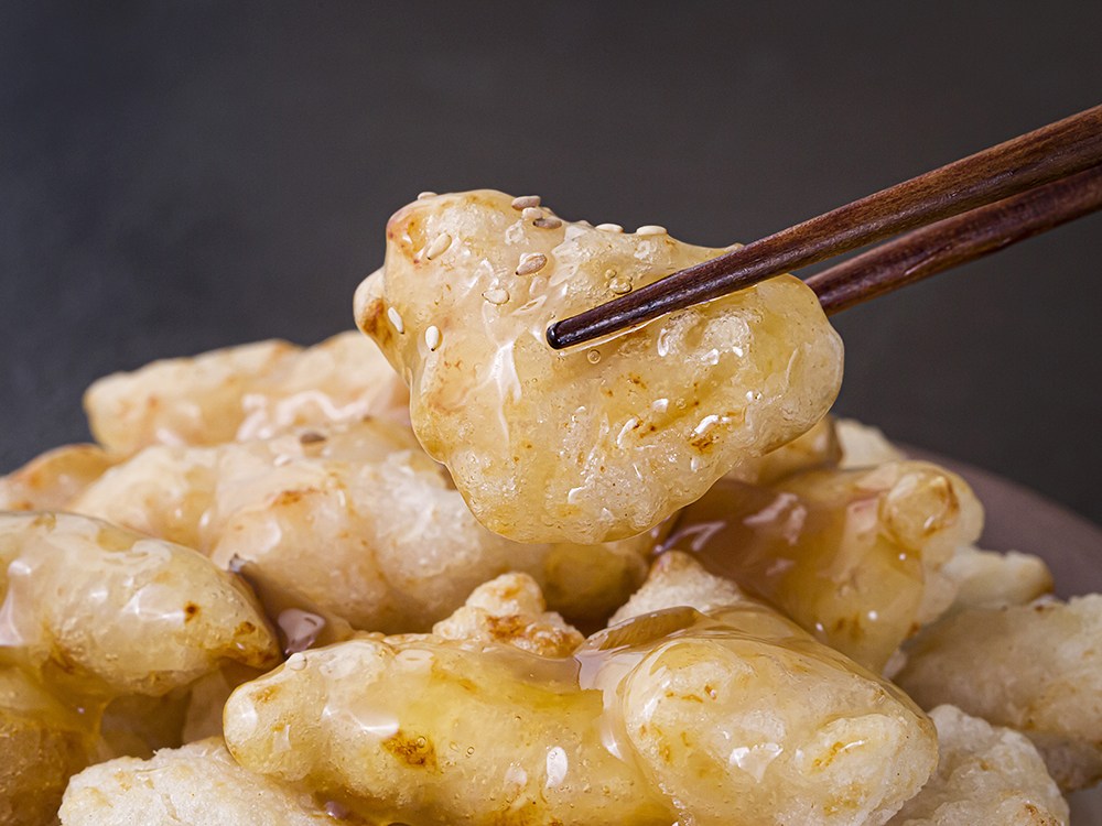 바삭하면서도 쫀득한 안심 꿔바로우예요. 기름기가 적어 담백하고 육질이 부드러운 닭고기 안심을 사용했지요. 에어프라이어 등으로 조리해 간편하게 드셔보세요. 동봉된 소스를 곁들이면 새콤달콤한 감칠맛을 즐길 수 있답니다.