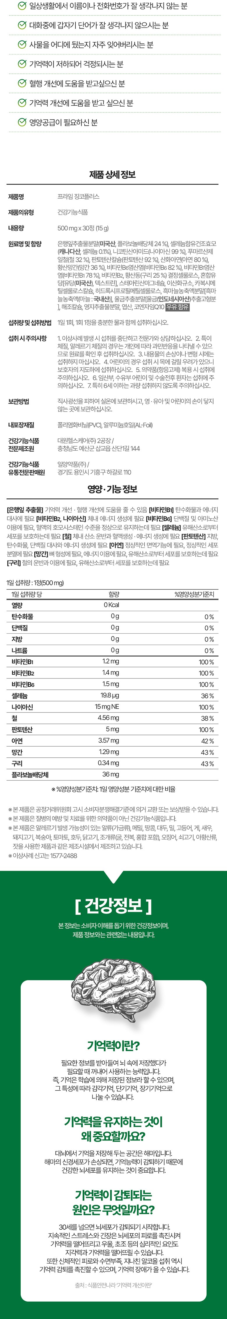 | 제품명 | 프라임 징코 플러스 | 제조업소의 명칭과 소재지 | 컨텐츠 참조 |