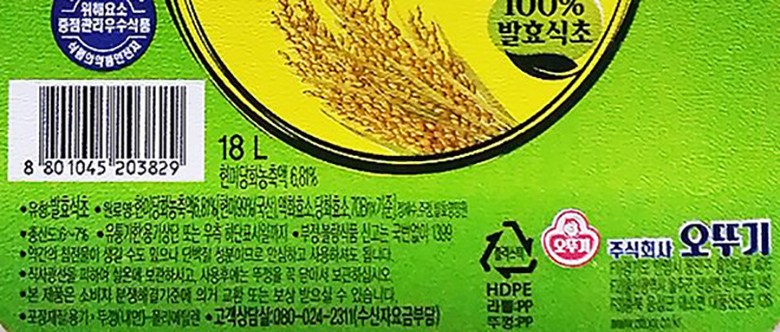 | 제품명 | 오뚜기 현미식초 PE | 식품의 유형 | 발효식초 |