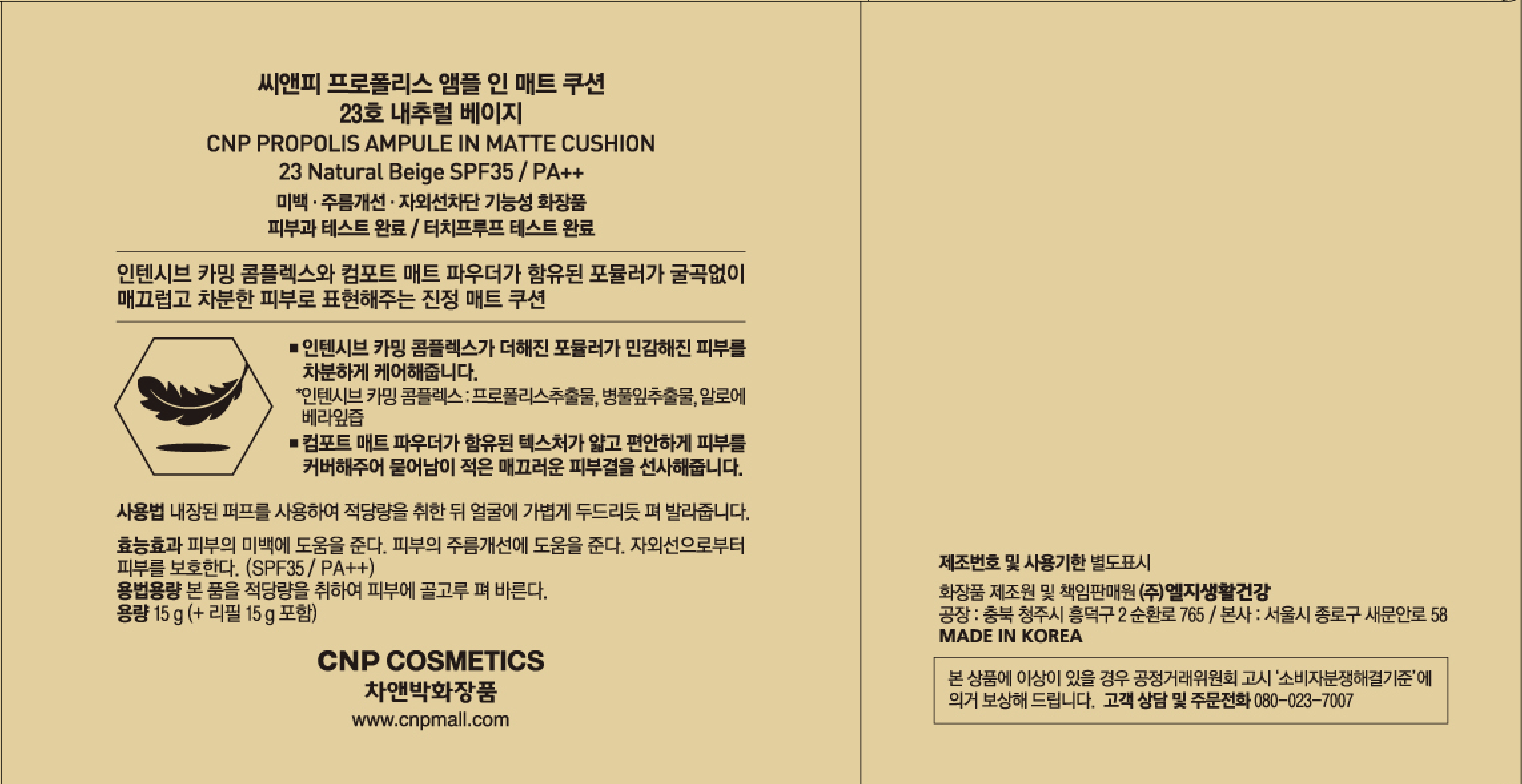 | 용량(중량) | 15g | 제품 주요 사양 | 모든 피부용 |