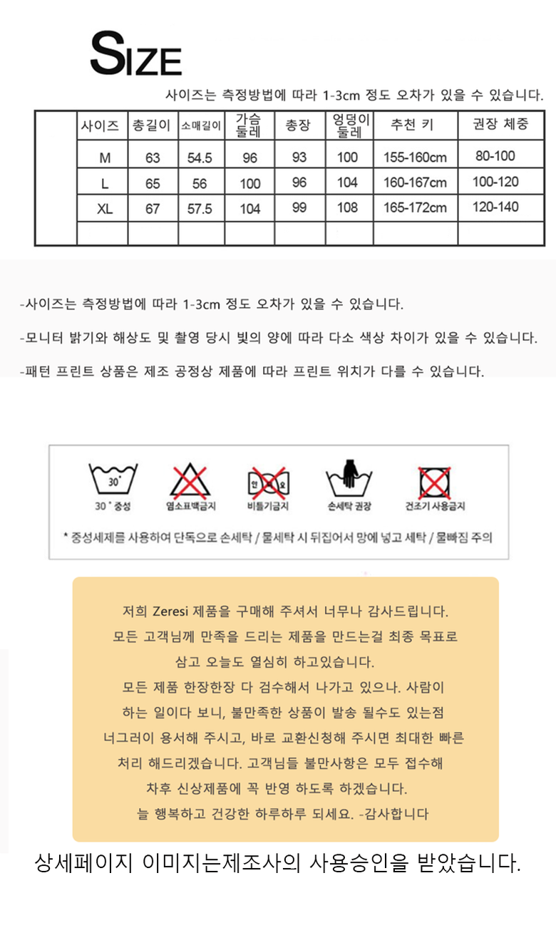 | 제조국 | 중국OEM | 세탁방법 및 취급시 주의사항 | 화기주의 |