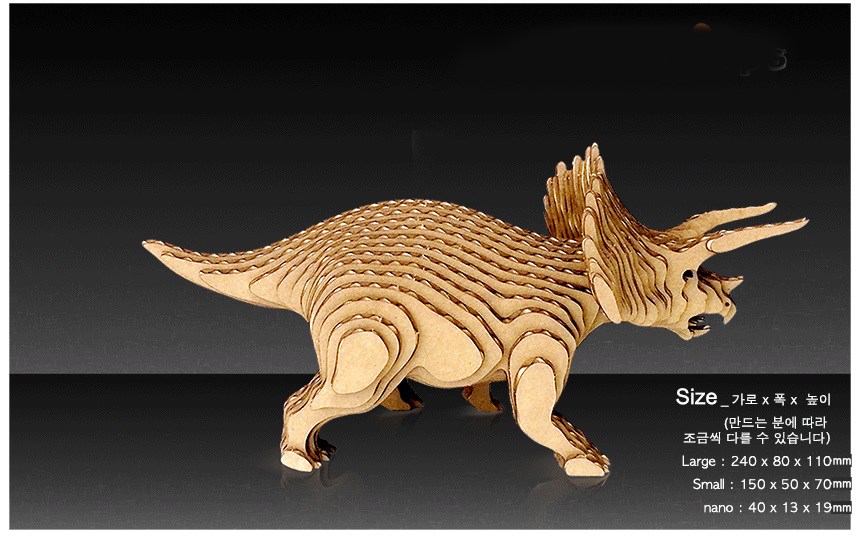 콘타모 3D 종이 입체퍼즐 트리케라톱스 라지, 우드, 1개