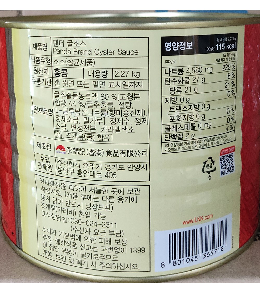 | 제품명 | 팬더 굴소스 | 식품의 유형 | 소스류(살균제품) |