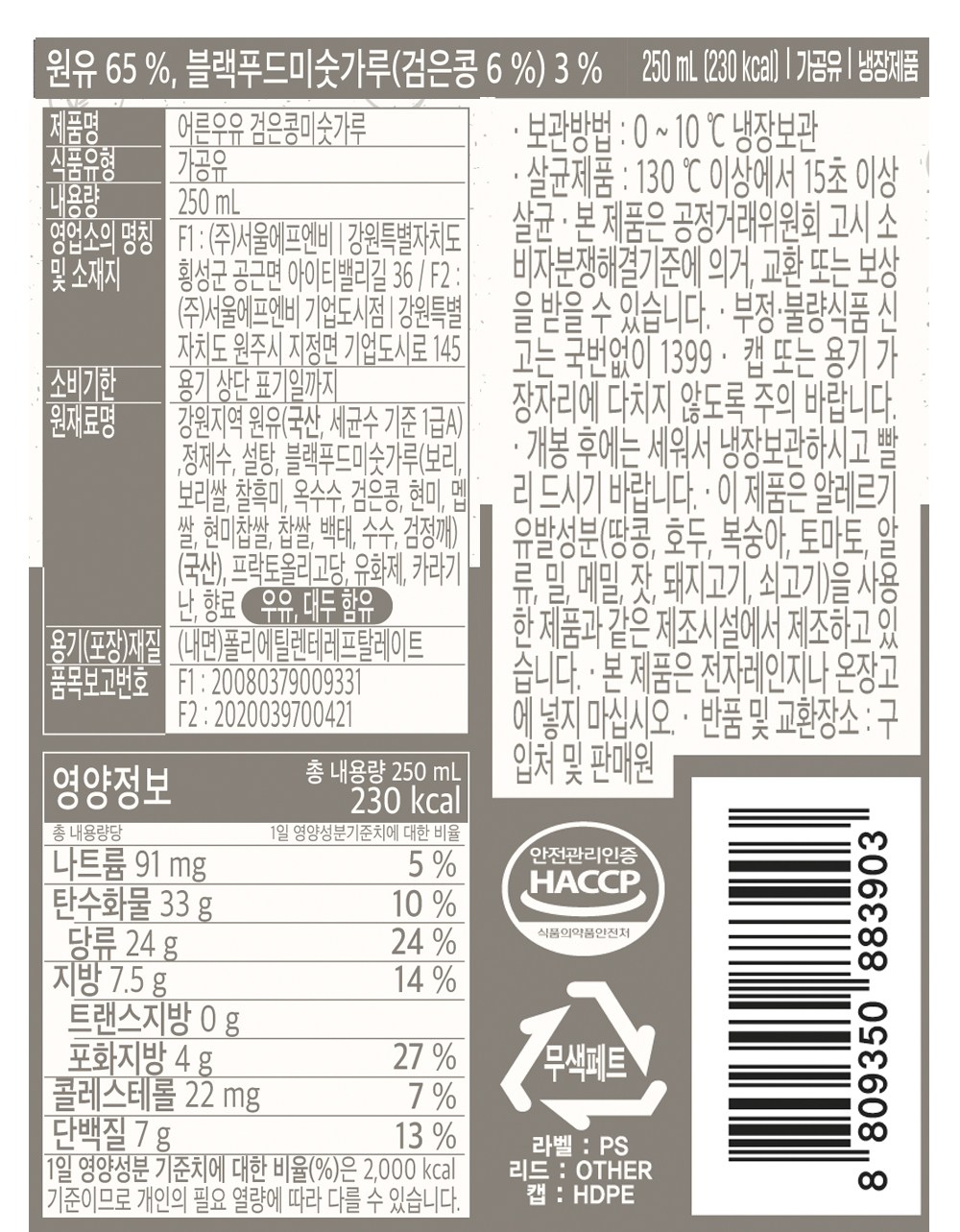 어른우유 검은콩미숫가루