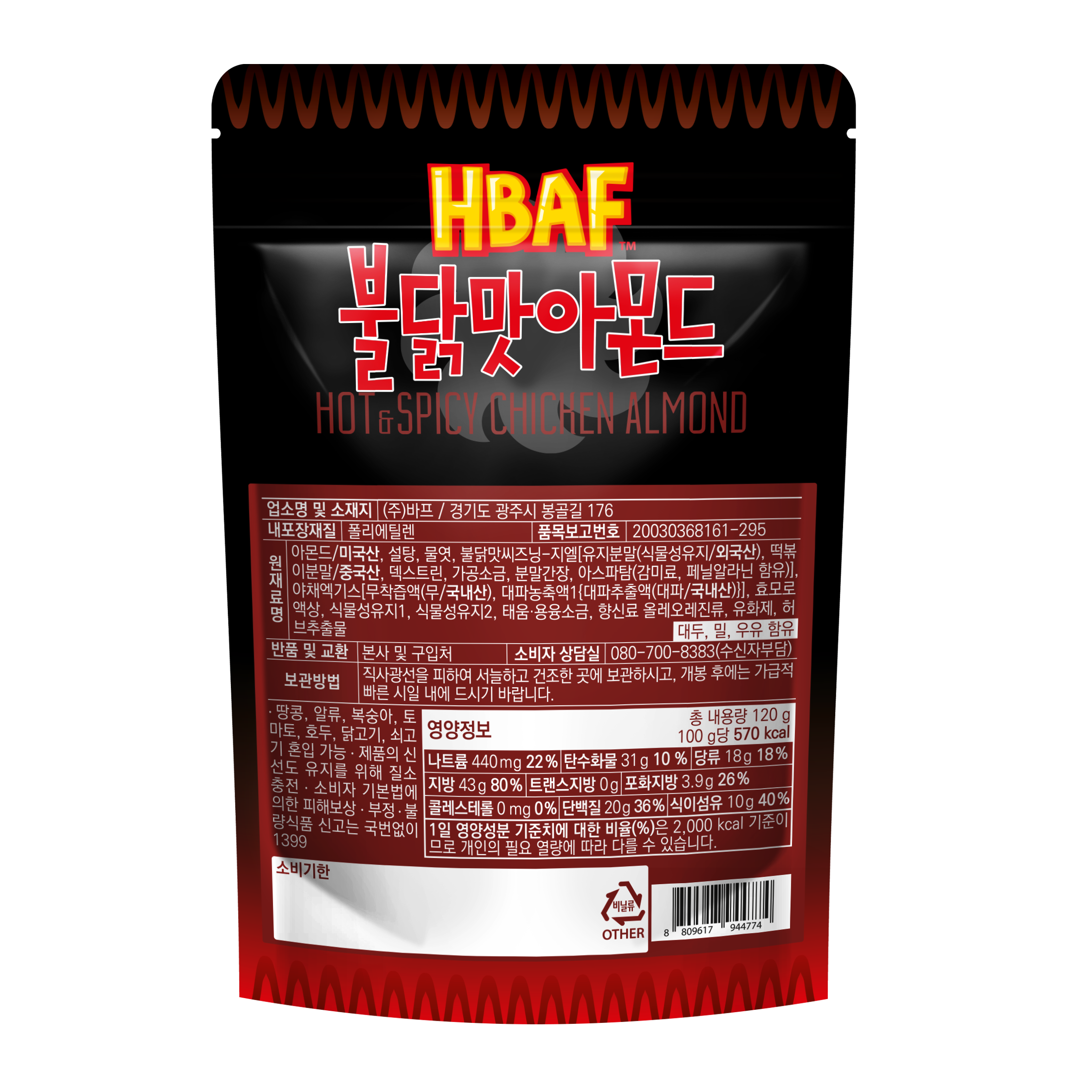 | 제품명 | 불닭맛아몬드 | 식품의 유형 | 땅콩 또는 견과류가공품 |