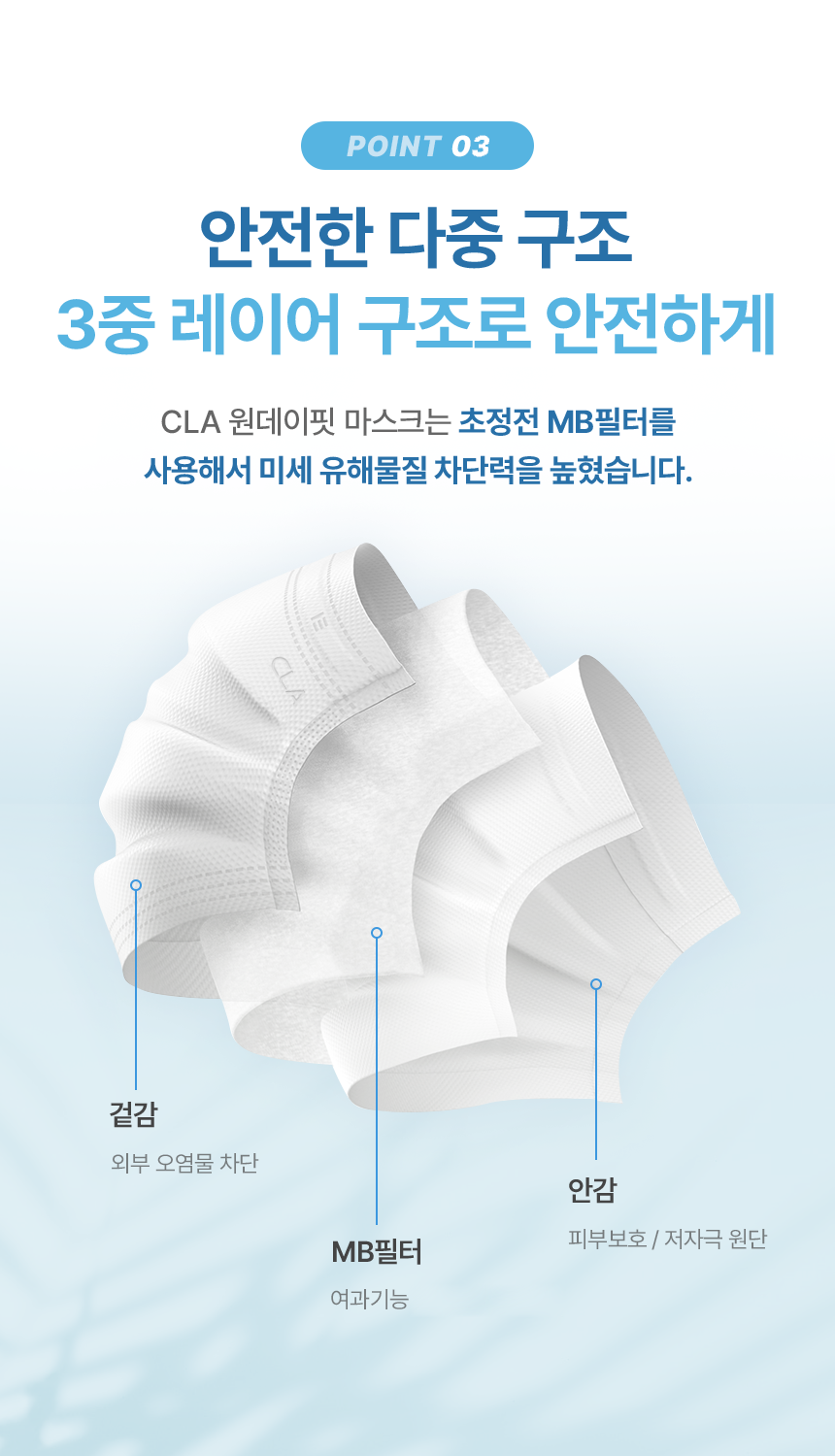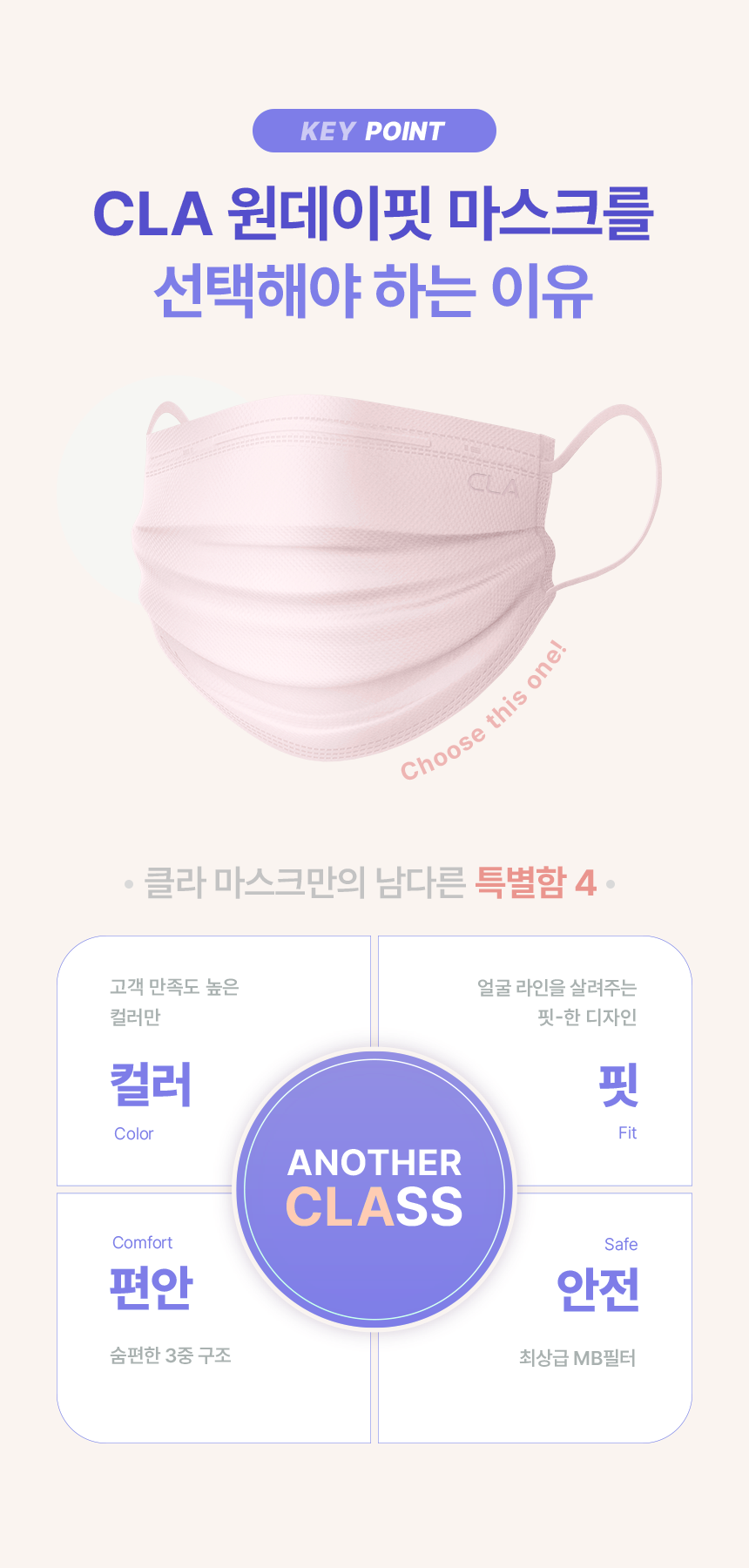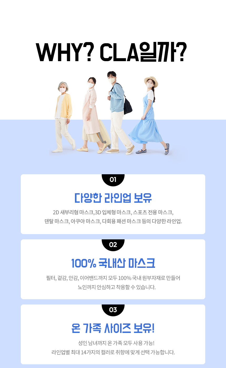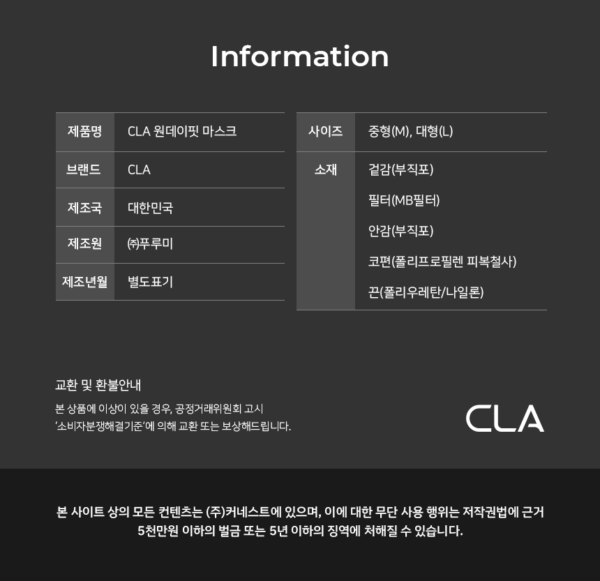 | 품명 및 모델명 | CLA 원데이핏 마스크 | 인증/허가 사항 | 유/KC마크 |