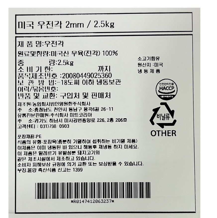 2mm 두께로 얇게 정형한 소고기 전각이에요. 야들야들하고 쫄깃한 식감을 자랑하지요. 씹을수록 번지는 구수한 감칠맛이 일품이랍니다. 노릇하게 구워 드셔도 좋고, 볶음, 찌개, 샤브샤브 등 다양한 요리로 즐겨도 좋아요.