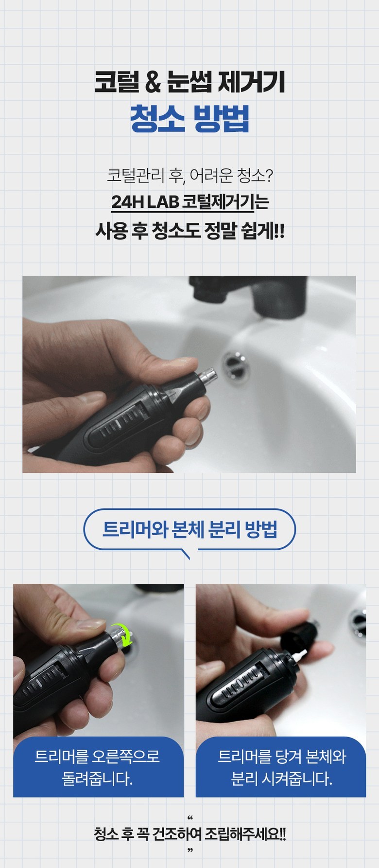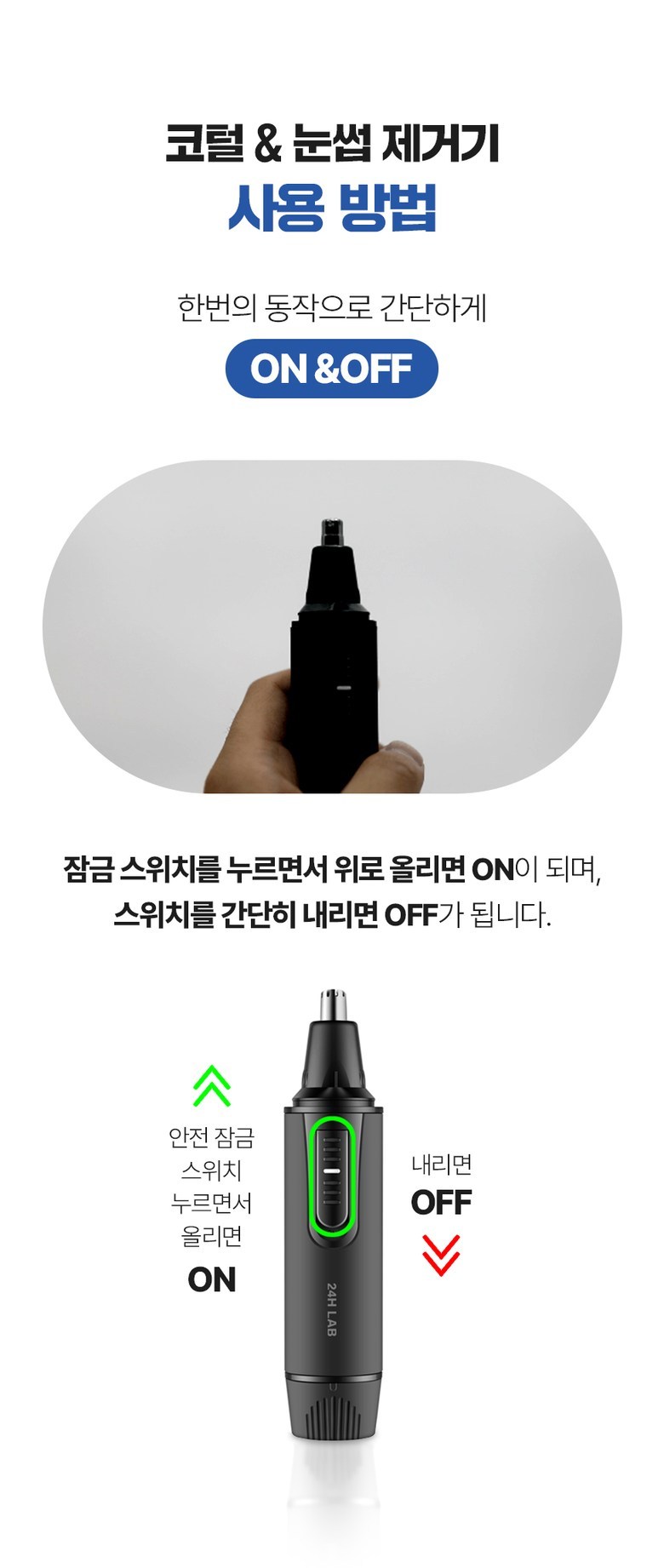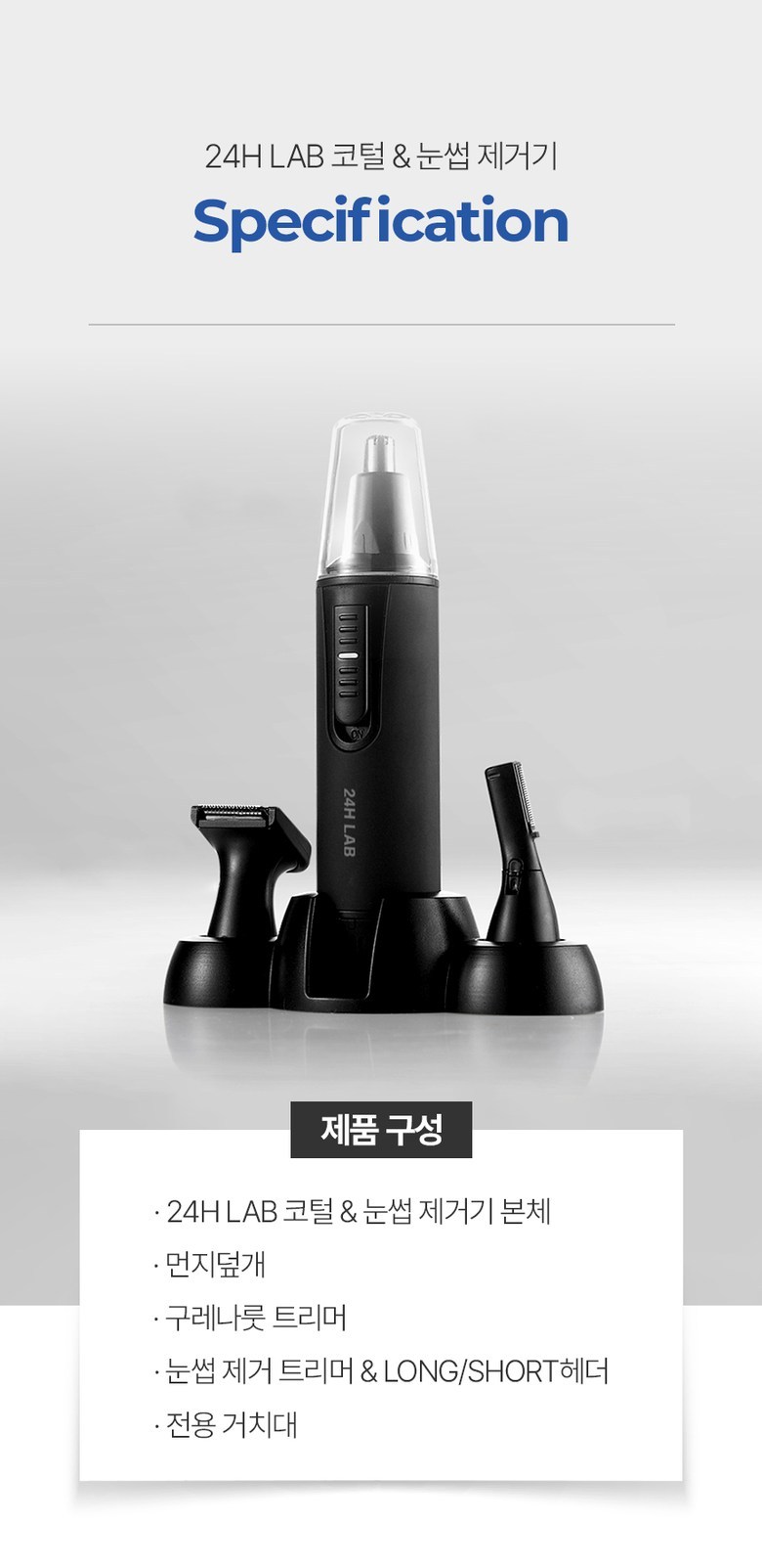 | 품명 및 모델명 | 코털제거기 / 24HL-NEHTRM | KC 인증정보 | 본품 : R-R-suW-24HL-NEHTRM, 건전지 :B052R354-18005A |