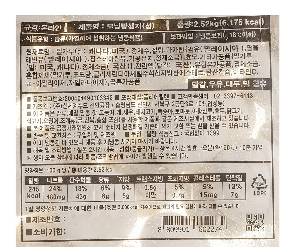 | 포장단위별 내용물의 용량(중량), 수량 | 2.52kg x 3개,1개 | 원재료명 및 함량 | 컨텐츠 참조 |