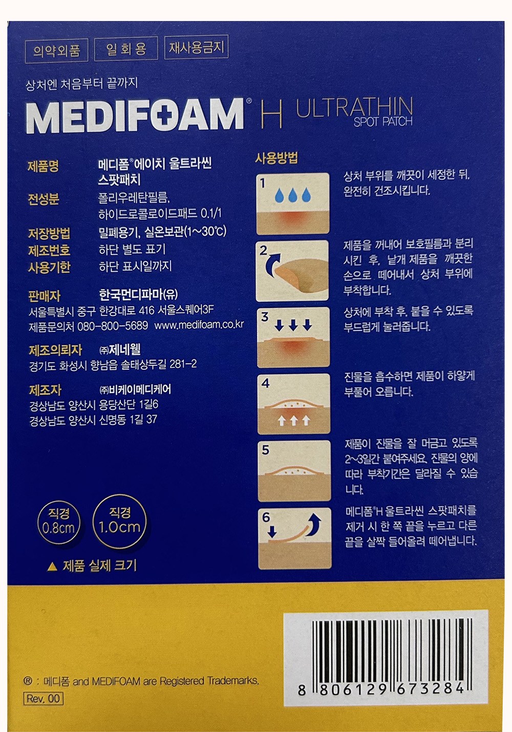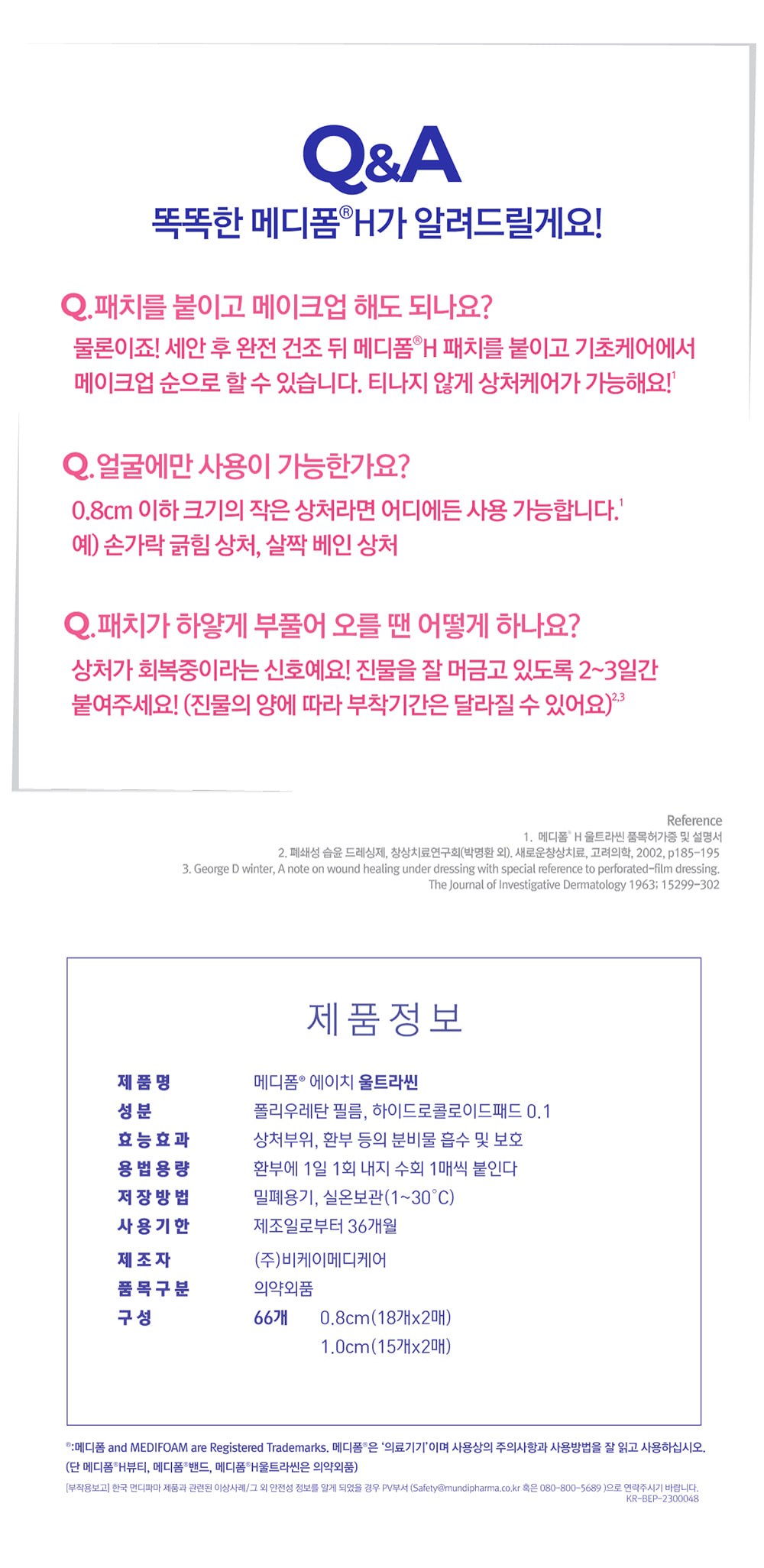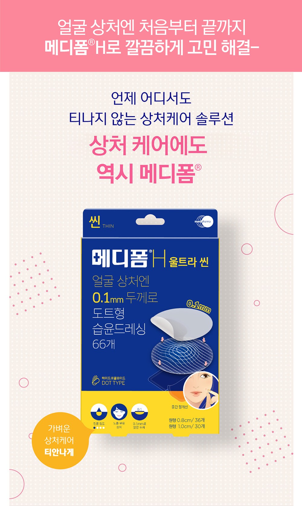 | 품명 및 모델명 | 메디폼 에이치 울트라씬 스팟패치 | 인증/허가 사항 | 의약외품 |